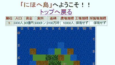 | 地盤沈下 | 島の広さが35000万坪(350hex)を越えると、島の重みで地盤沈下が発生することがあります。 そうすると、海に隣接している陸地が水没してしまいます。 |