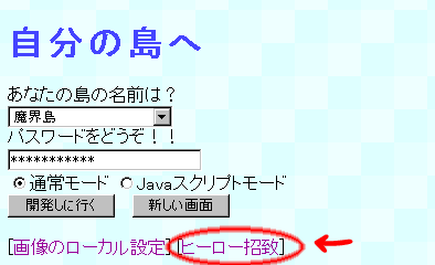 あとは、自分の島の名前を選んで、パスワードを入力し、「上のヒーローを招致する」というボタンを押せば完了です。