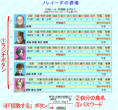 能力値で選んでもよし、顔や名前で選んでもよしです。